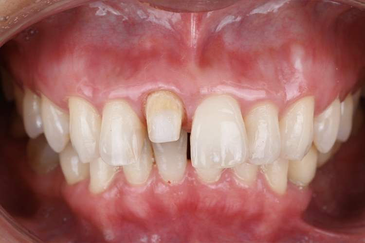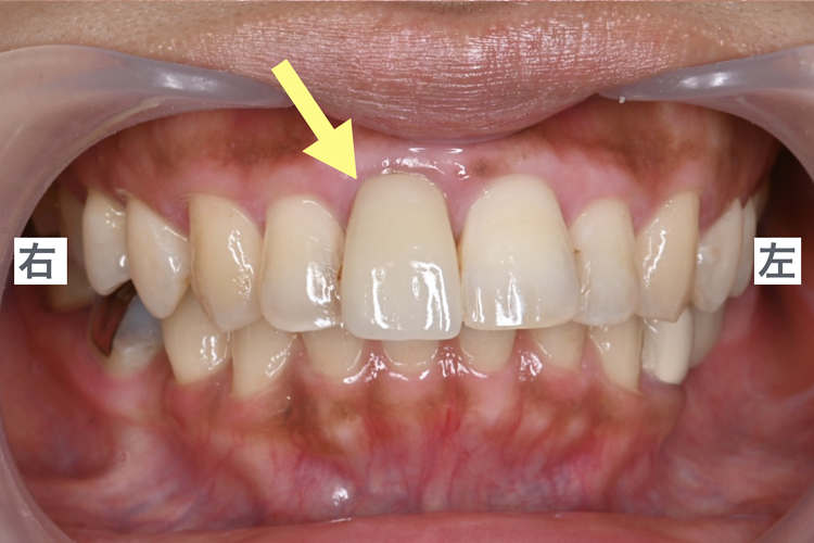 特に、歯の色が周りと合っていない、隣の前歯と大きさが合っていないことが気になるとのことでした。
