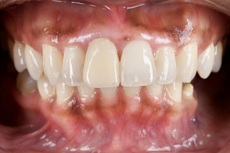 歯肉全体に色素沈着が認められる